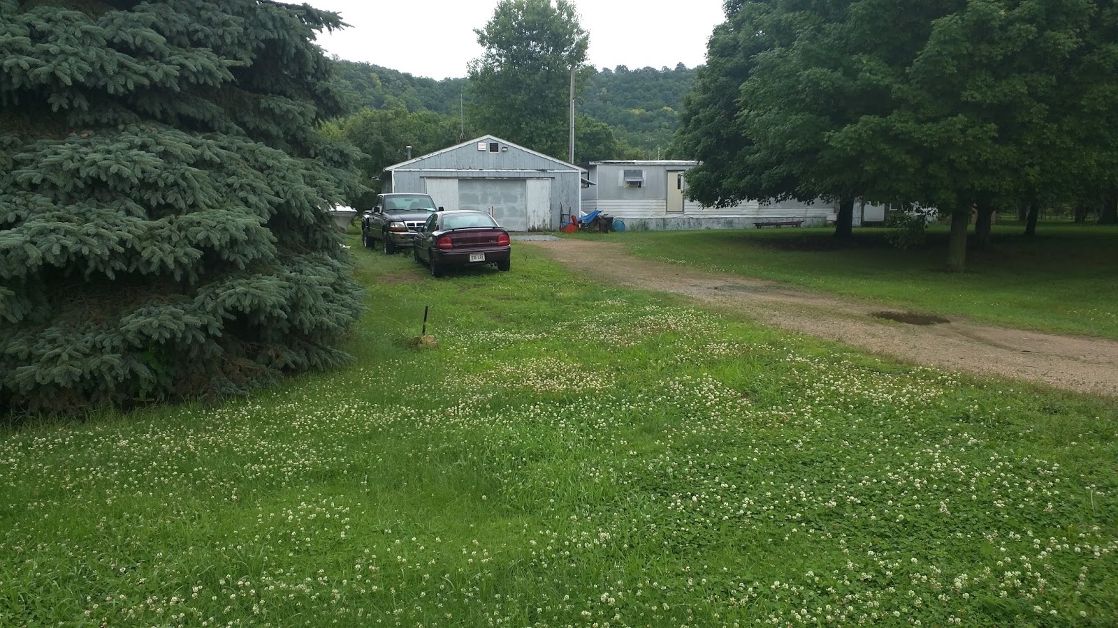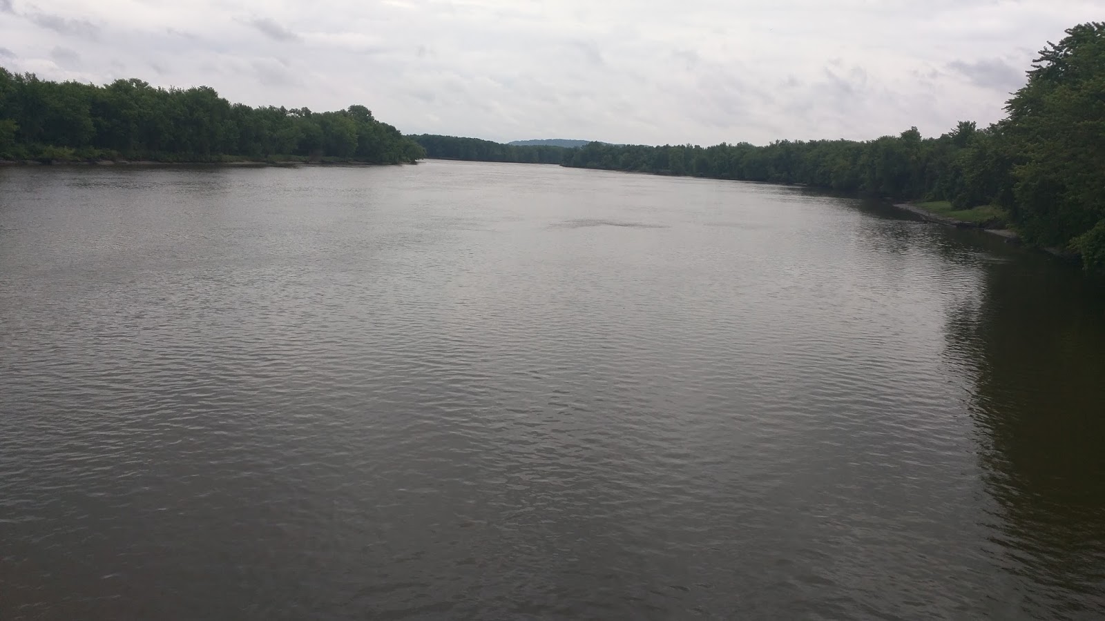 The first stretch is lightly rolling hills, following the river. I notice a change in housing style and the size of the lots. People seem less affluent on this side of the river. Houses are smaller and more run down. The lawns are still there but not quite so well kept. The vehicles in the driveways are older. Some homes have several cars and trucks to the side or behind the house, some of them with grass growing up around the wheels, obviously not been used for a while. Perhaps never will again. Interspersed between the small bungalows are trailer homes with their wheels hidden by skirting, some with extensions added. They obviously are permanent installations despite the wheels.